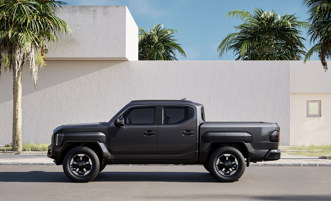 타스만의 외관은 오프로드 주행을 염두에 두고 설계되었으며, 위 사진에서 볼 수 있는 독특한 아트워크와 함께 도시 환경에서도 눈에 띄는 스타일을 자랑합니다. 이 차량은 대형 블랙 알로이 휠과 올터레인 타이어를 장착하여, 어떤 지형에서도 뛰어난 주행 성능을 발휘할 수 있습니다.