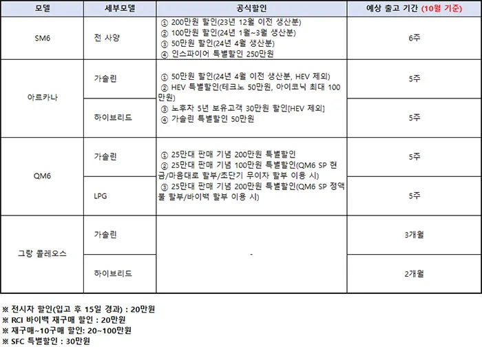 르노코리아: QM6 200만원 할인 + 아르카나, SM6 특별 혜택!