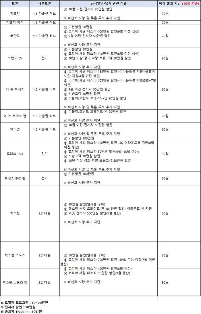 KG 모빌리티: 토레스 최대 155만원 할인 + 렉스턴 스포츠&칸 특별 혜택!